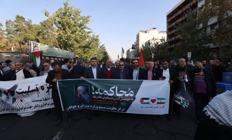 تجمع بزرگ جامعه ورزش و جوان در حمایت از مردم مظلوم فلسطین امروز در شهر تهران برگزار شد و بسیاری از مسوولین ورزش و همچنین شمار زیادی از ورزشکاران در این تجمع حضور پیدا کردند تا انزجار خود را نسبت به حملات وحشیانه رژیم صهیونیستی اعلام کنند.