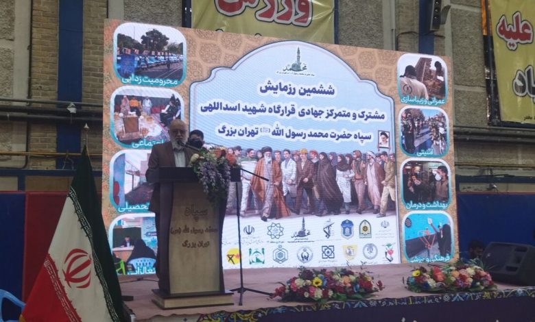 همچنین جانشین سپاه محمد رسول الله(ص) تهران بزرگ با اشاره به اجرا شدن ششمین رزمایش قرارگاه شهید اسداللهی نیز گفت: هدف همه انبیا اصلاح امور بوده که این امر عرصههای مختلفی دارد که یکی از این عرصهها عمران و آبادانی است.