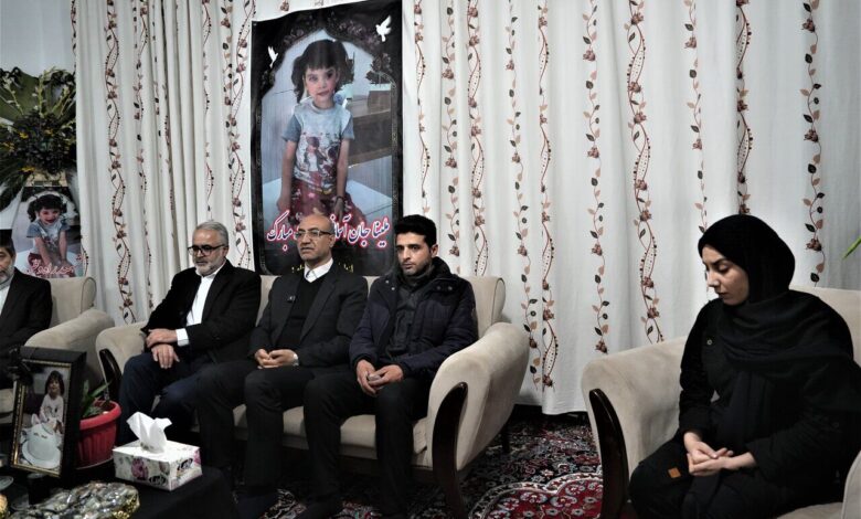 دیدار استاندار کرمانشاه با خانواده شهیده سه ساله، ملینا اسدی